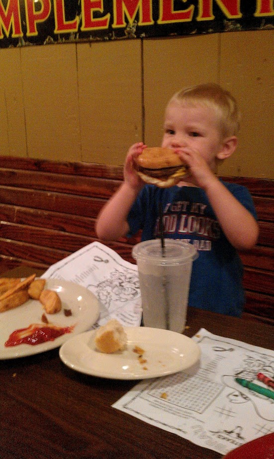 | This cheeseburger was as big as his head! |