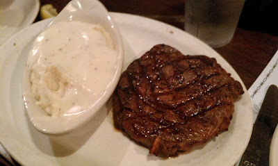 Of course my hubby HAD to get the steak. I tried a bite and it was very tasty! It was cooked exactly to his specifications (medium well) and the mashed potatoes were creamy and rich, too.
