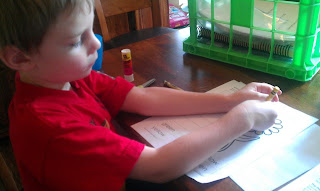 I was worried it would just be too difficult or boring for him, but I am finding it is the opposite. HE LOVES THIS PROGRAM. Since he loves it, I know we will be continuing this! I am pleased with how EASY it is for the teacher, so I am encouraged to get it out and work on it with him each day. He is getting to do cut and paste, handwriting practice, journaling with pictures, playing folder games and card games, learning poetry, discussing and dissecting literature, and learning stories to make writing and recognition FUN. He can hear, see, and touch this program.