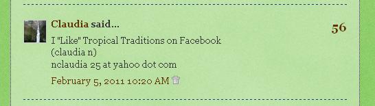 February 9, 2011WINNER of the Tropical Traditions giveaway! ShareTweetPin0 SharesThe winner of the free quart of TROPICAL TRADITIONS Gold Label Virgin Coconut Oil is……… Congratulations, Claudia! I’ll be emailing you in a few minutes. Thank you all for entering!! 🙂 ShareTweetPin0 Shares